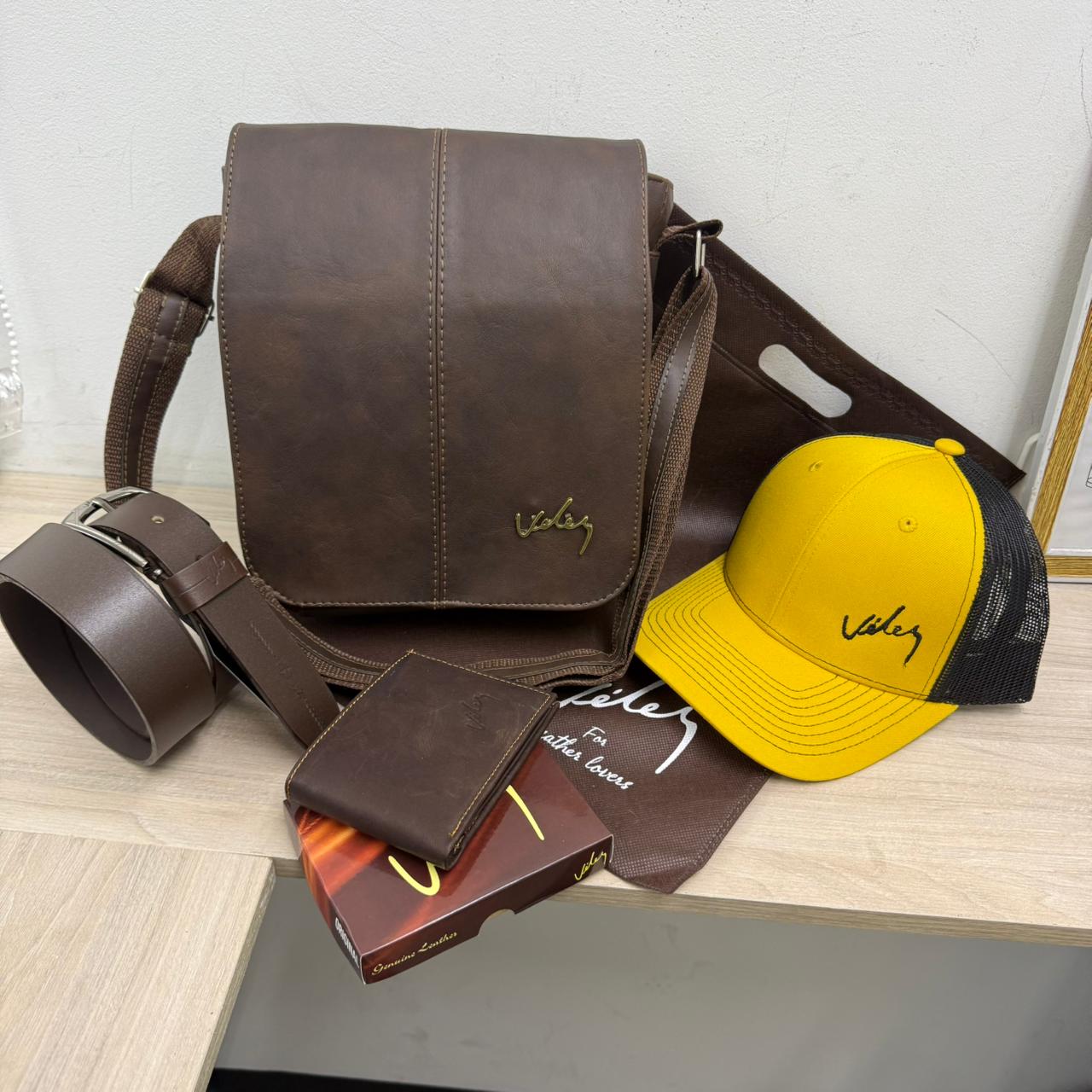 TRIO VELEZ LARRY INCLUYE GORRAMaterialCuero Dacota Especificaciones Dos compartimientos PrincipalesUn bolsillo con cremallera invisible principalUn Bolsillo traseroBolsillo para TabletTira de TerciarTula de presentaciónGorra marcada VelezMedidas:29cmx27cmx7cm